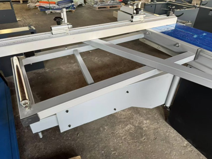Роликовая каретка с цилиндрическими направляющими действует по принципу «вагонной тележки», обеспечивая, помимо, точности и качества распила, долговечность работы.