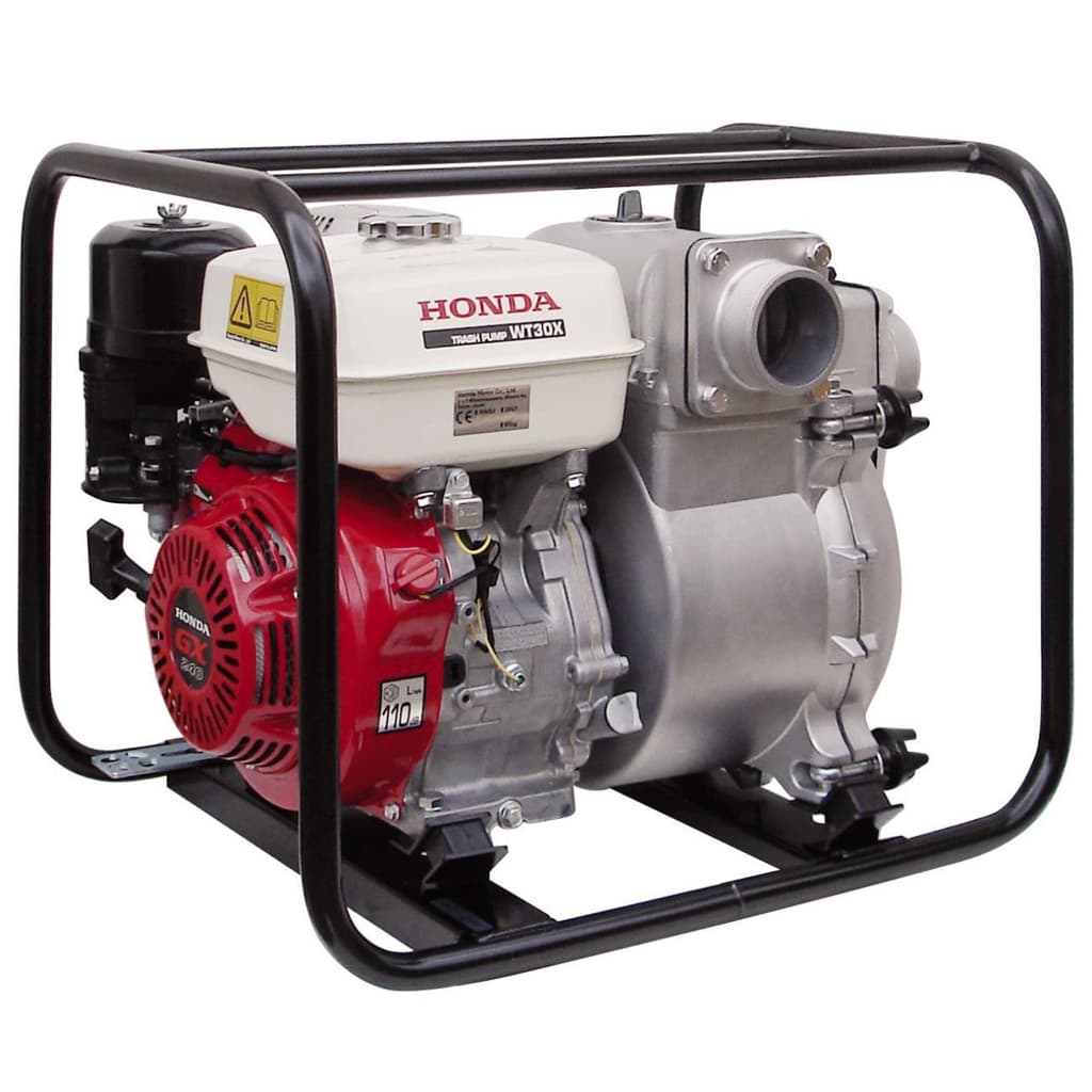 Мотопомпа бензиновая Honda (Хонда) WT 30 X – это мощный и высокопроизводительный насос для перекачки грязной воды, диаметр твердых частиц в которой не превышает 26 мм. Бензиновый насос для воды Honda WT30 X отличается высокой скоростью откачки 1210 л в минуту. Бензомотопомпа Honda WT 30X оснащена высокопроизводительным мотором Honda мощностью 7,2 л.с.Такой насос отлично подойдет для осушения старых прудов и котлованов, а также затопленных подвалов. Ему не страшен мелкий строительный мусор и гравий. В комплекте с бензиновой мотопомпой Honda WT30X поставляется фильтр для грубой очистки. Крыльчатка легко очищается без использования дополнительных инструментов. Корпус насоса надежно защищен металлической рамой.
