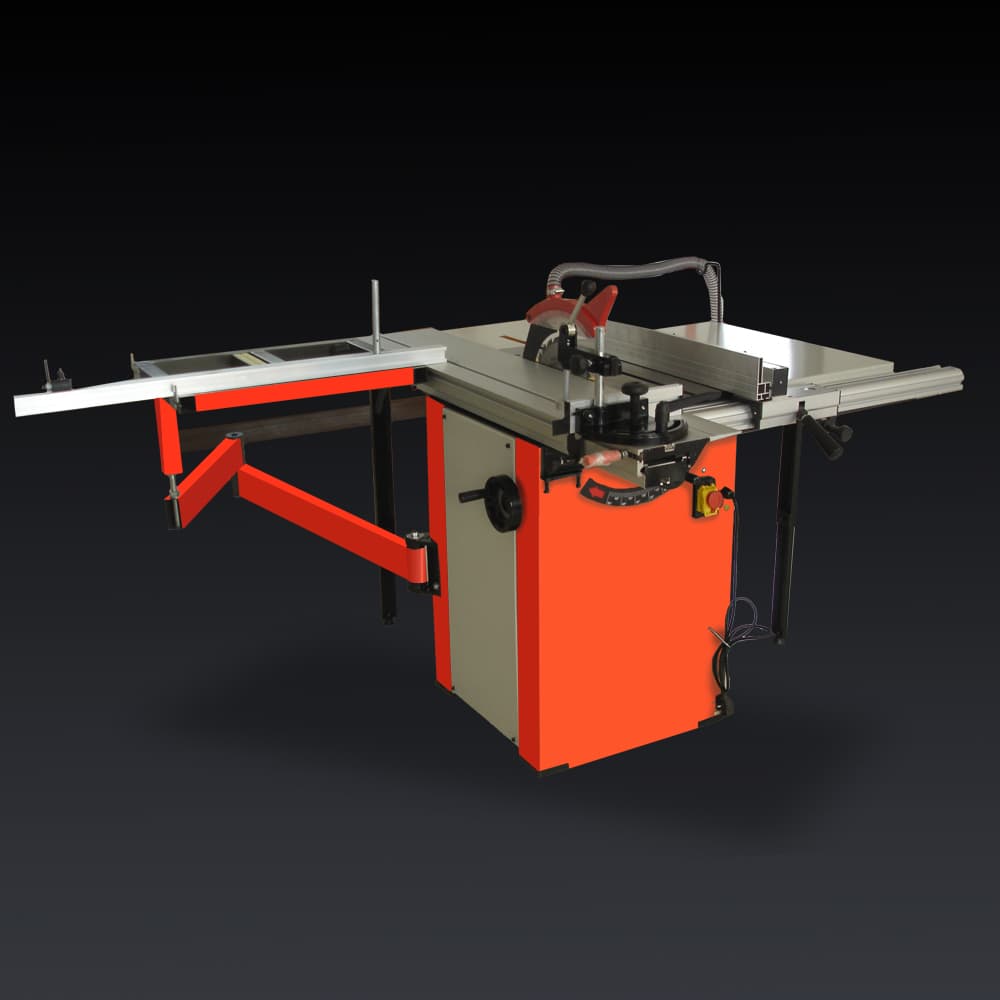 - Большой чугунный стол с чугунными удлинителями для обеспечения максимальной опоры материала.