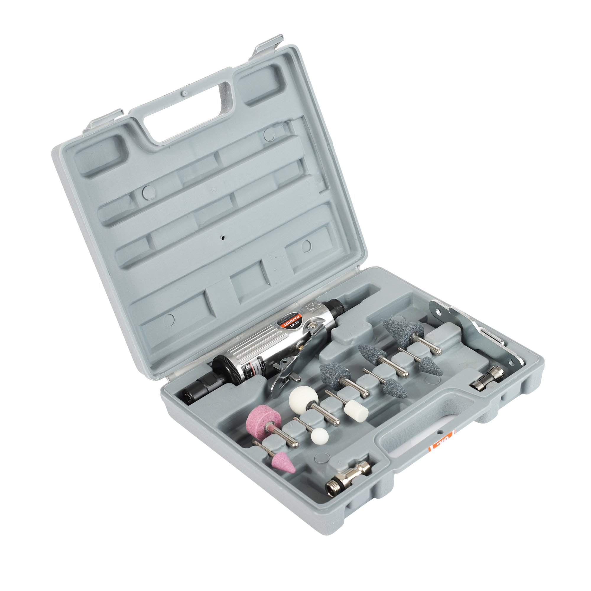 Подходит для шлифования тонких сварных швов, обработки контуров, полирования поверхностей. Поставляется с набором шлифкамней и с кейсом, удобным для хранения и транспортировки. Модель имеет длинную широкую клавишу пуска - для удобного пользования инструментом. Может быть использована для работы в труднодоступных местах.