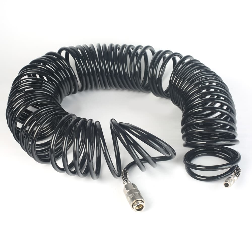 Спиральные шланги изготовлены из полиамидного материала в форме спирали устойчивы к низким температурам эластичны оснащены быстросъёмными штуцерами.