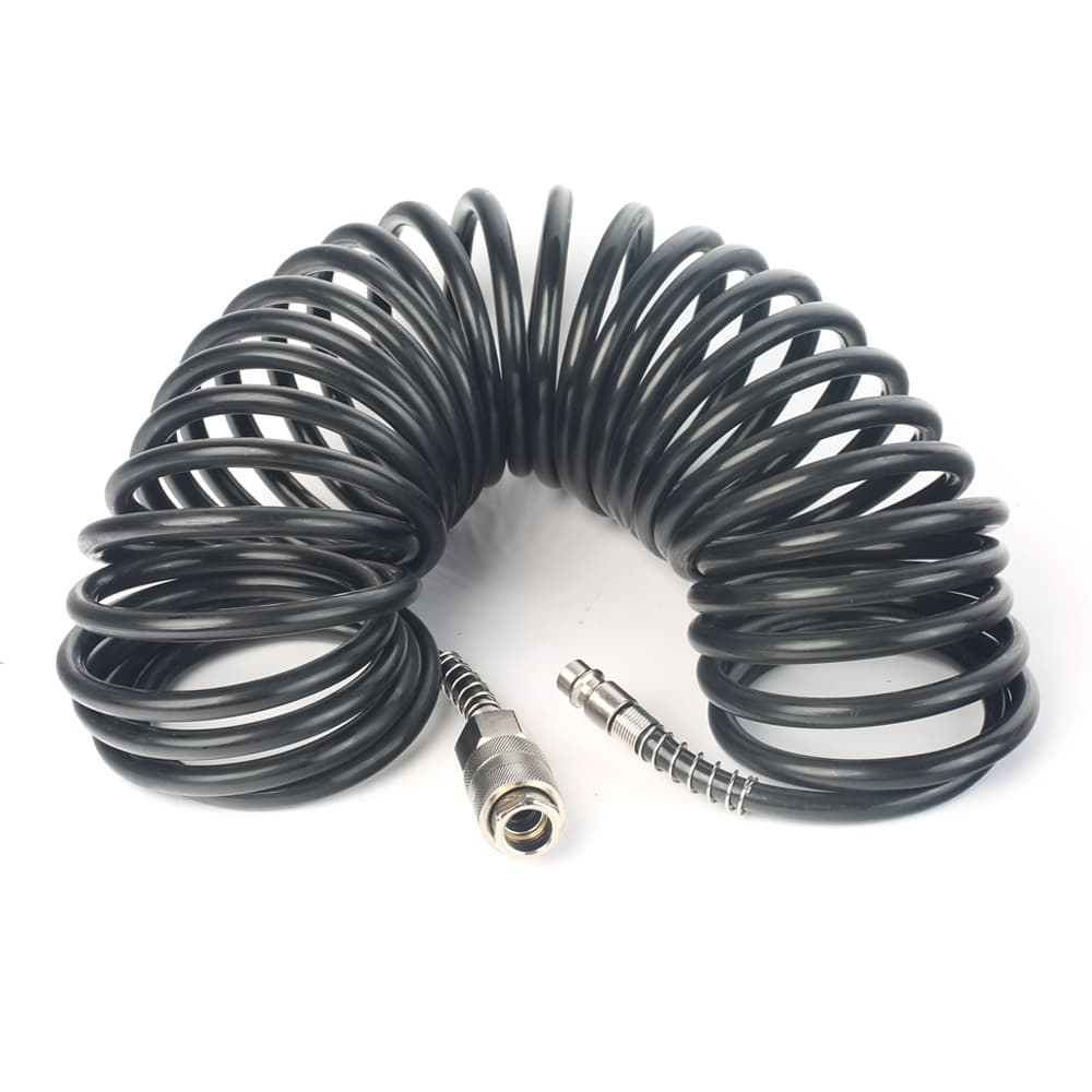 Спиральные шланги изготовлены из полиамидного материала в форме спирали устойчивы к низким температурам эластичны оснащены быстросъёмными штуцерами.
