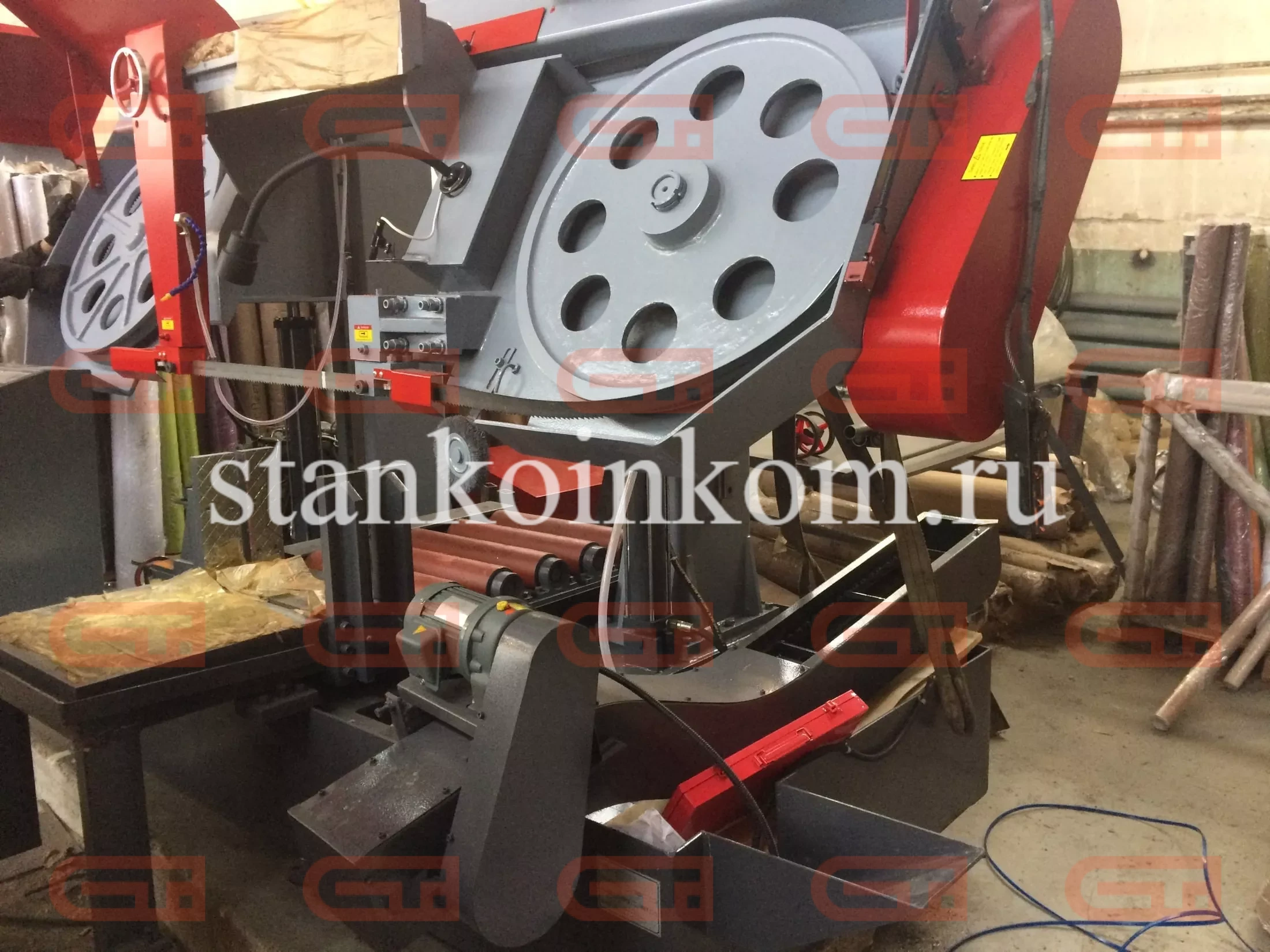 Зажим заготовки осуществляется гидравликой, что обеспечивает быструю и надежную фиксацию заготовки. Натяжение полотна осуществляется механически и обеспечивает оптимальную натяжку по параметрам, рекомендованных мировыми производителями ленточных полотен (300 Н/мм2).