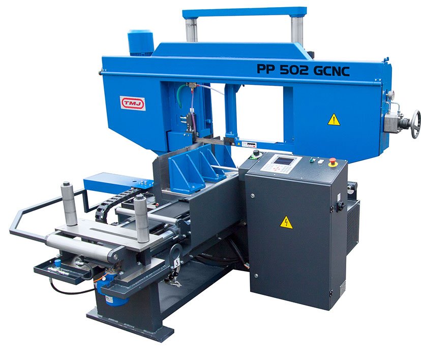 Механизм автоматизированной подачи заготовок на автоматических станках состоит из рольганга длиной 800 мм и подающих тисков, имеющих ход 500 мм. При необходимости отрезания заготовок длиной более 500 мм станок позволяет осуществить несколько циклов подачи без запуска пилы. Управление режимами работы автоматических станков осуществляется от встроенного контроллера, позволяющего задавать и запоминать до 100 программ обработки деталей, а также осуществлять диагностику и контроль работы станка. Контроллер полностью русифицирован, обеспечивает удобство программирования, управления и индикации, а также защиту от несанкционированного доступа к программам работы.