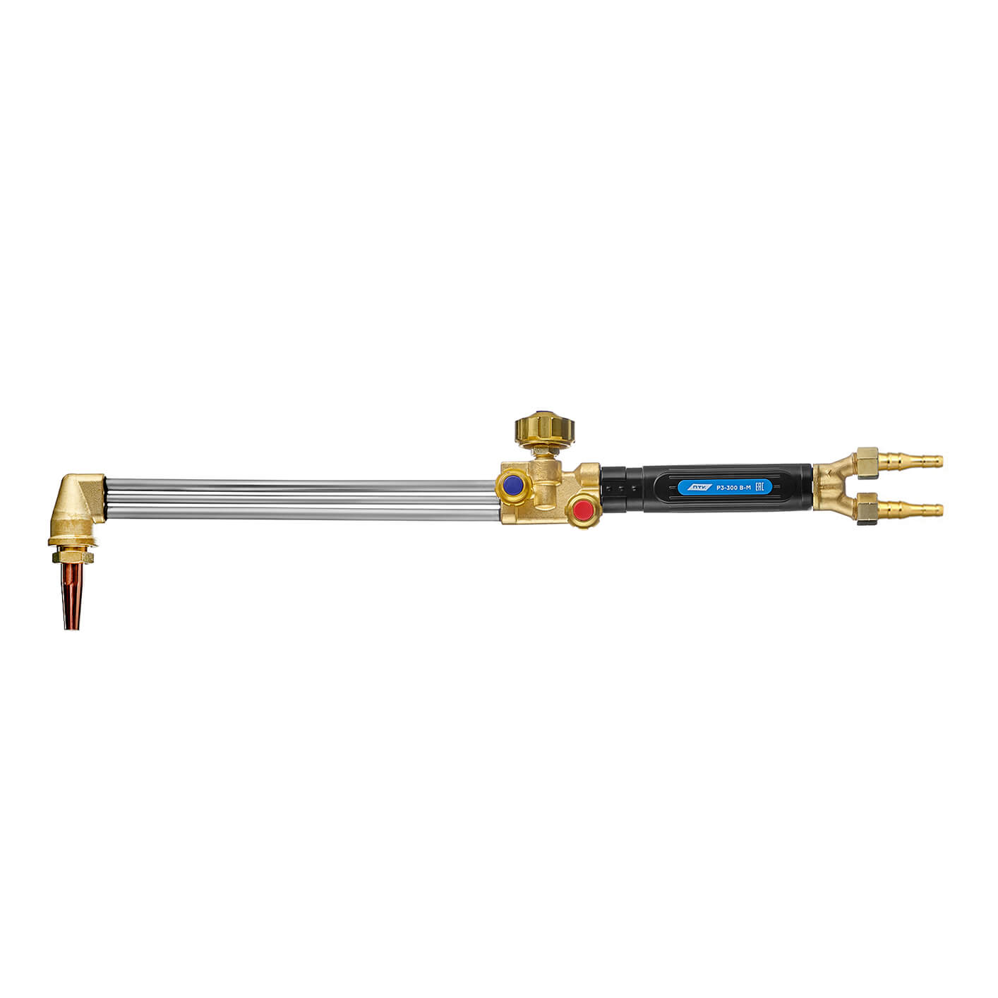 Универсальный резак Р3-300 В-М внутрисоплового смешения газов предназначен для ручной кислородной резки листового и сортового металлопроката из низкоуглеродистых сталей толщиной до 300 мм.