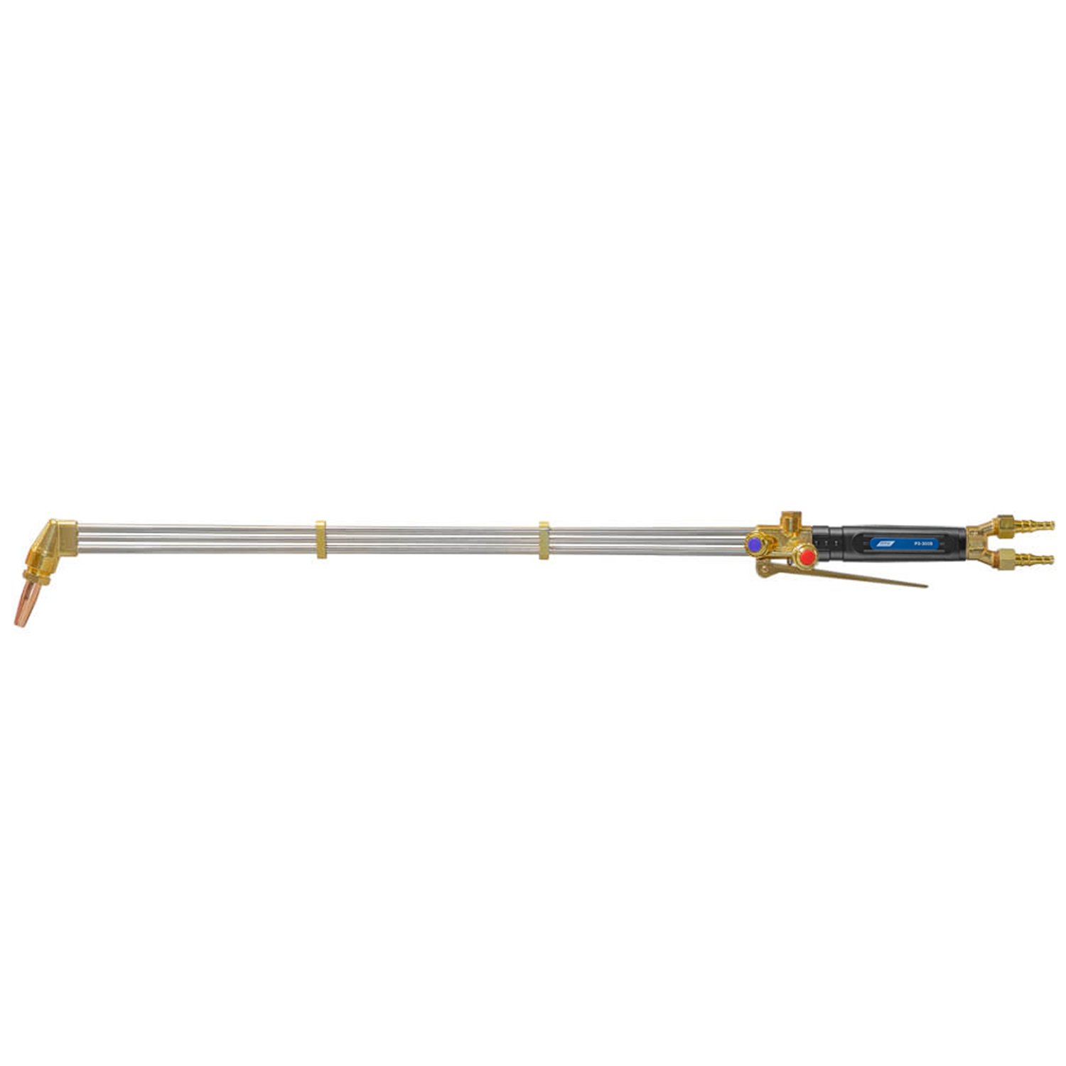 Универсальный резак внутрисоплового смешения газов для резки металла толщиной до 300 мм. Длина резака 900 мм. Угол наклона головки резака 110°. Укомплектован разборным пропановым мундштуком, ниппелями и накидными гайками. Не требует установки огнепреградительных клапанов.