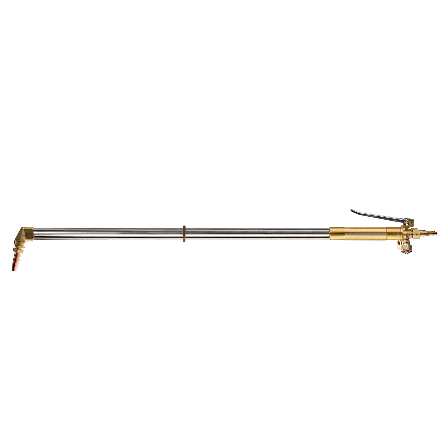 Универсальный резак внутрисоплового смешения газов для резки металла толщиной до 300 мм. Длина резака 900 мм. Угол наклона головки резака 110°. Укомплектован разборным пропановым мундштуком, ниппелями и накидными гайками. Не требует установки огнепреградительных клапанов.
