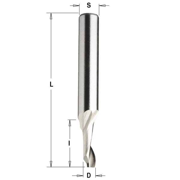 Применение: Конструкция с одной режущей гранью позволяет добиться чистого и быстрого реза на различных алюминиевых сплавах и пластиках. Эти фрезы работают более эффективно по сравнению с прямыми фрезами. Данные фрезы имеют заточку на торце и могут работать