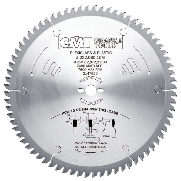Благодаря специально разработанным зубьям с особым резом MATB, а также специальному сплаву напаек, эти пильные диски идеально подходят для пиления плексигласа (оргстекла), тонкого пластика не оплавляя его. Данные диски хороши также при работе по ламинированной фанере, толстому пластику и ламинату.