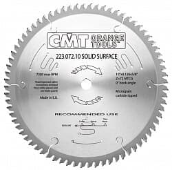 CMT создала инновационный модифицированный трапецеидальный зуб (MTCG) из специального микрозернистого карбида вольфрама для аккуратного реза твёрдых материалов. Данные пильные диски идеальны для пиления таких материалов как искусственный камень DuPont Corian (Кориан), Wilsonart Gibraltar (Гибралтар), Varicor (Варикор) и др. Эти пилы также великолепны для работ по толстому пластику оставляя ровные края, не оплавляя их.