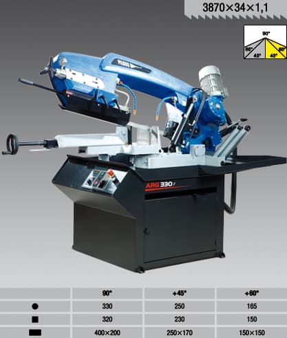 Совершенно новая технология литья пильной рамы и обновленный уникальный дизайн. Литье корпуса рамы выполнено с полыми карманами, проходящими по всей длине рамы, что позволило добиться большей жесткости рамы и повышения точности реза. Использование прочной, широкой ленты является оптимальным выбором для обеспечения всех потребностей производства. В новой модели используется полотно с шириной 34 мм и толщиной 1.1 мм, позволяющие использовать данный станок для распиловки труднообрабатываемых материалов с большими сплошными сечениями, в том числе нержавеющих и инструментальных сталей. Подъем рамы осуществляется вручную, рабочая подача производится под тяжестью собственного веса рамы с возможностью простого регулирования дроссельного клапана подающего гидроцилиндра. После окончания пропила привод пилы автоматически останавливается. Для облегчения подъема рамы, станок оснащен пружинной системой с возможностью регулировки натяжения для изменения усилия необходимого для подъема и опускания рамы.