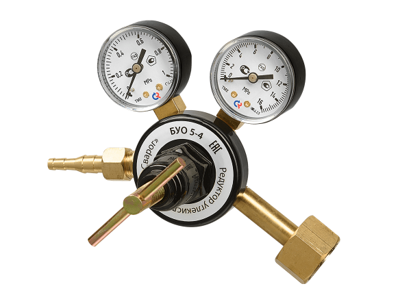 Углекислотный редуктор Сварог БУО 5-4 С ПОВЕРЕННЫМИ МАНОМЕТРАМИ предназначен для понижения давления поступающего из баллона газа и автоматического поддержания постоянным заданного рабочего давления