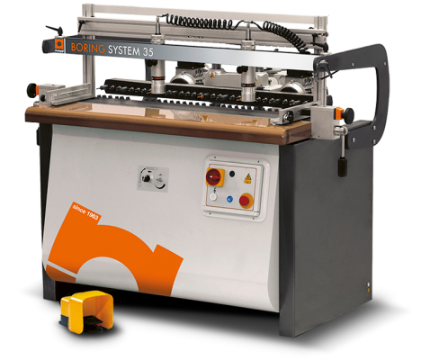 Сверлильно-присадочный станок BORING SYSTEM 23 Maggi предназначен для высокоточного сверления сквозных и глухих отверстий в торцах и плоскостях мебельных щитов и брусковых деталей