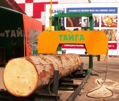 "Тайга Т-3" - пилорама с электроприводом и электромеханическим механическим подъемом пильной каретки, предназначена для распиловки круглого леса диаметром до 90 см, на доски, брус и мн. др.