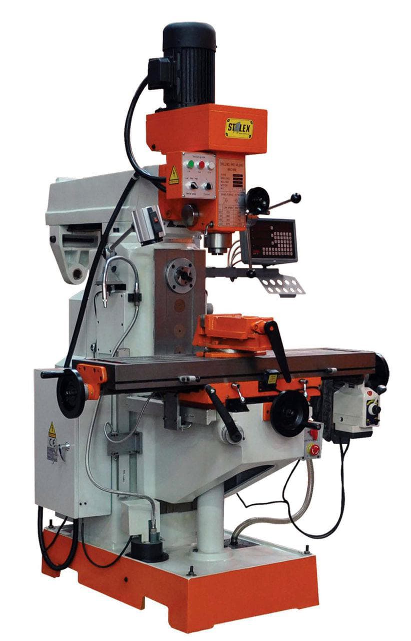 STALEX ZX6350C - многофункциональный универсальный аппарат для выполнения фрезеровочных, сверлильных, зенкеровальных и других операций в условиях производств любого типа. Отличается высокой точностью и надежностью. Станок оснащен поворотной (180˚) верхней частью, системой подачи СОЖ, подвижным рабочим столом с пазами Т-образной формы, индикаторным дисплеем.На станке можно обрабатывать детали как вертикальным, так и горизонтальным шпинделем, что позволяет использовать различные виды фрез: торцевые, концевые, дисковые, фасонные и т.д. Фрезерная голова станка имеет возможность поворота на угол ± 90 градусов. Станок оснащен системой подвода СОЖ и лампой местного освещения, тис.