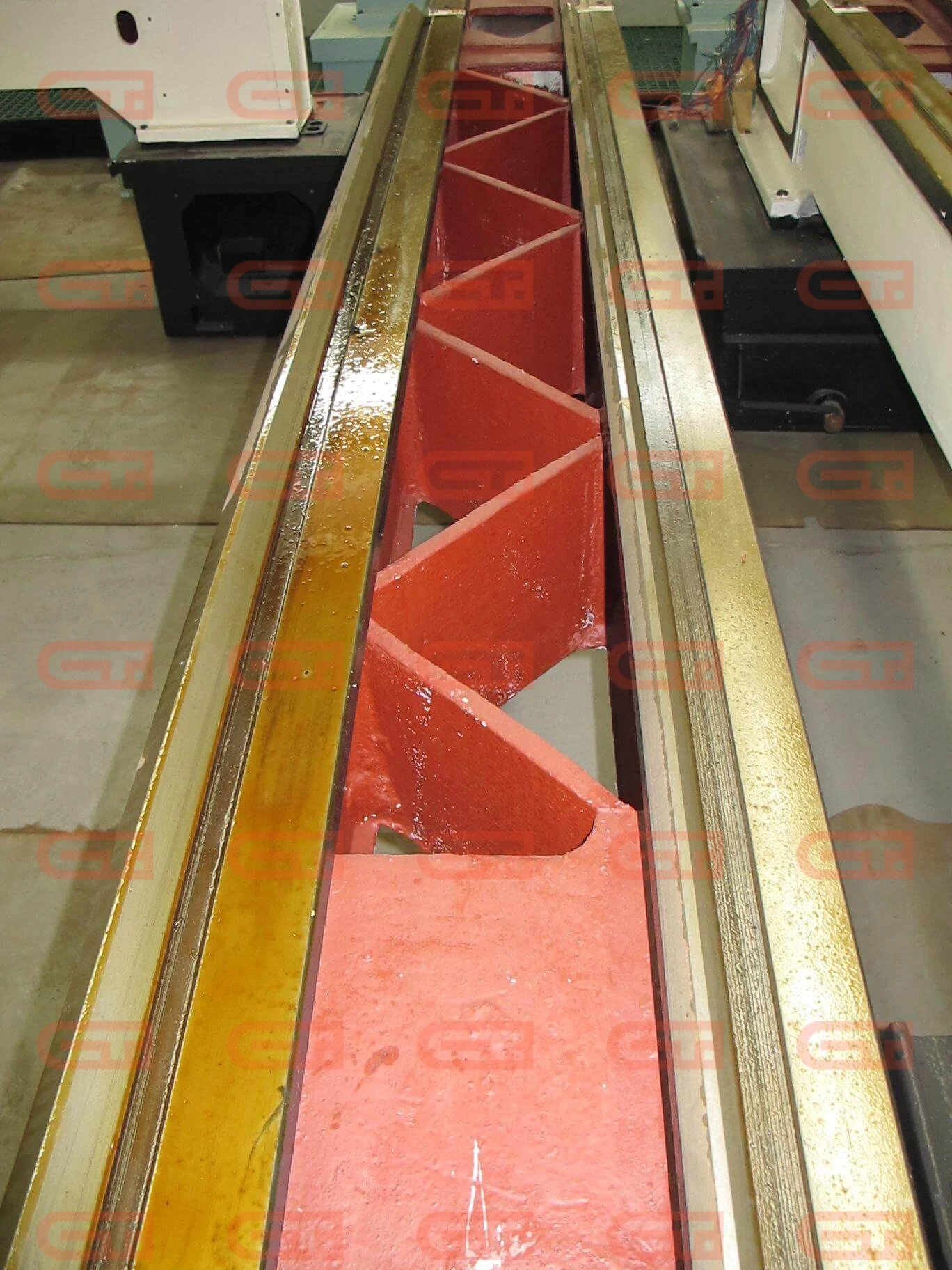 - Закаленные отшлифованные V-образные направляющие, ТВЧ до HRC50. Поверхность перемещающихся узлов (каретки, заднейя бабки) покрыты специальным покрытием Turcite-B для перемещения с минимальным износом и без трения. Система смазки направляющих снижает трудоемкость обслуживания станка и увеличивает его ресурс.